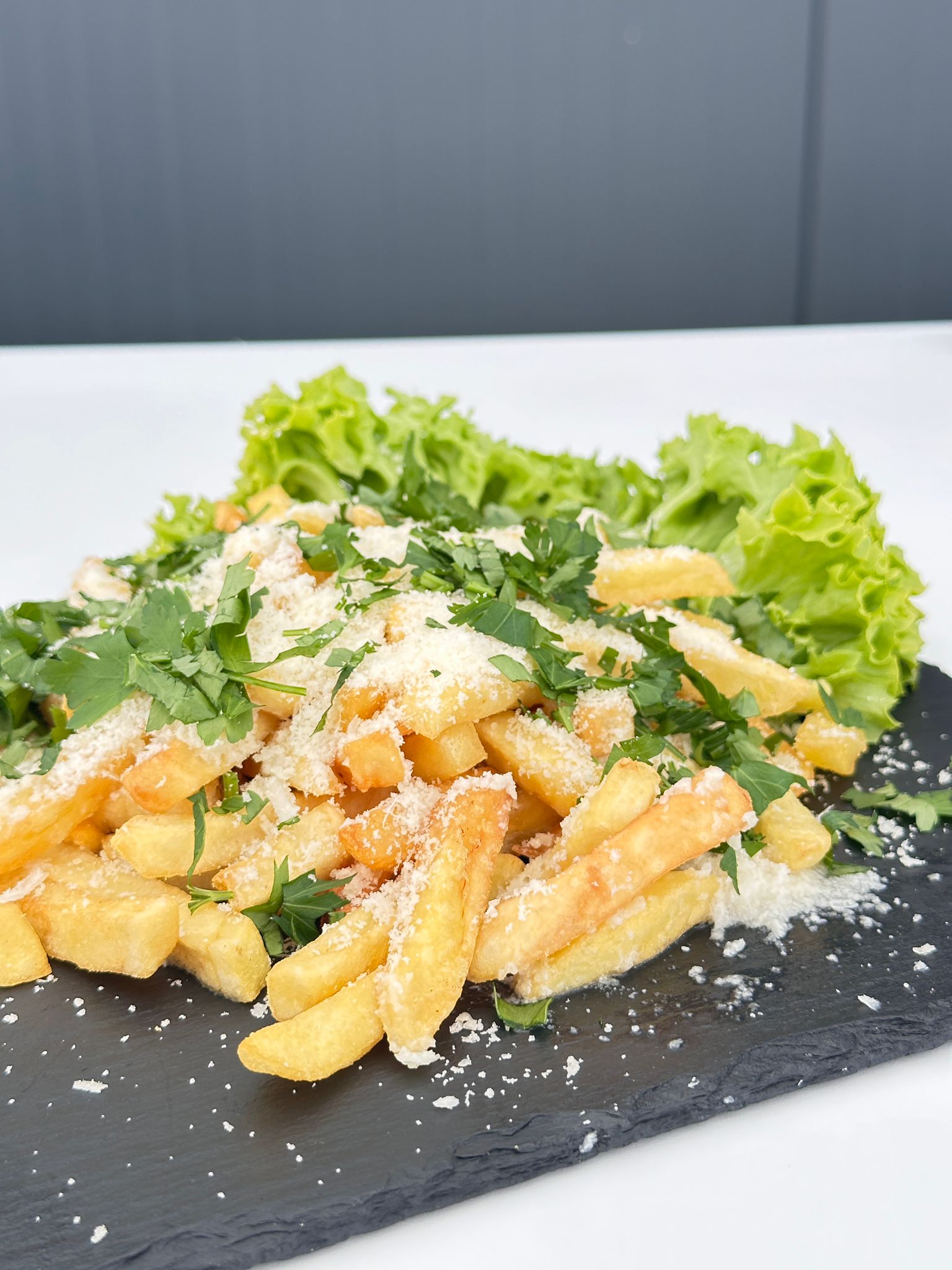 Cartofi prăjiți cu un plus de savoare, combinați cu parmezan fin, usturoi și pătrunjel proaspăt.