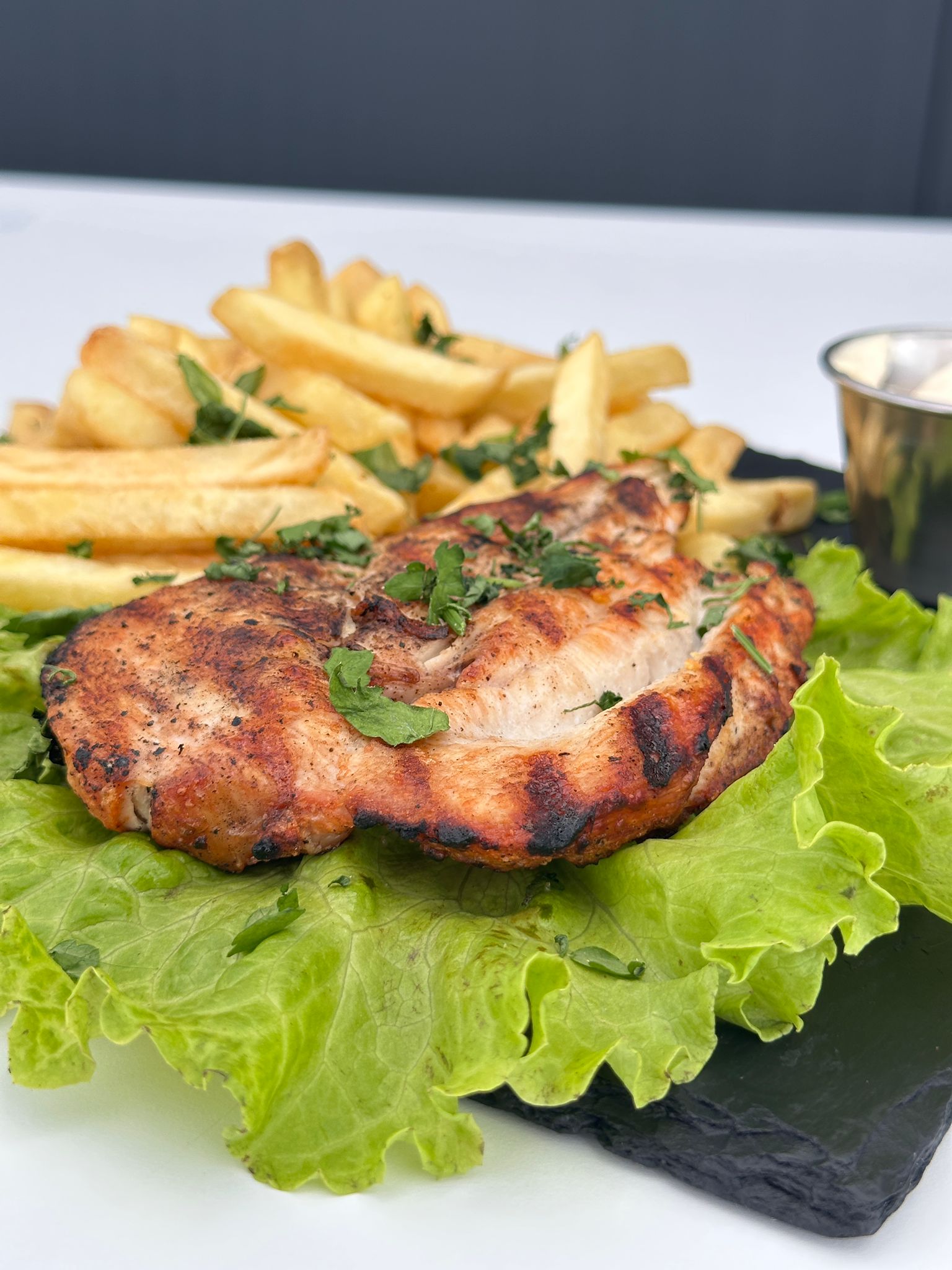 MENIU PIEPT DE PUI - Piept de pui la gratar, cartofi prajiti , sos usturoi