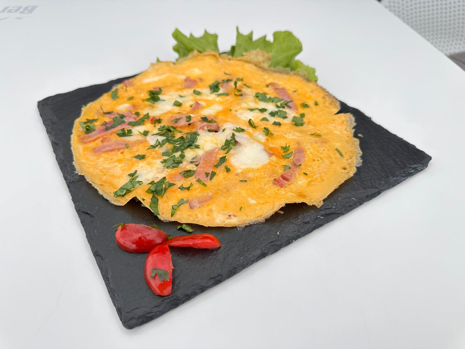 Combinația clasică de șuncă și cașcaval într-o omletă pufoasă și savuroasă.