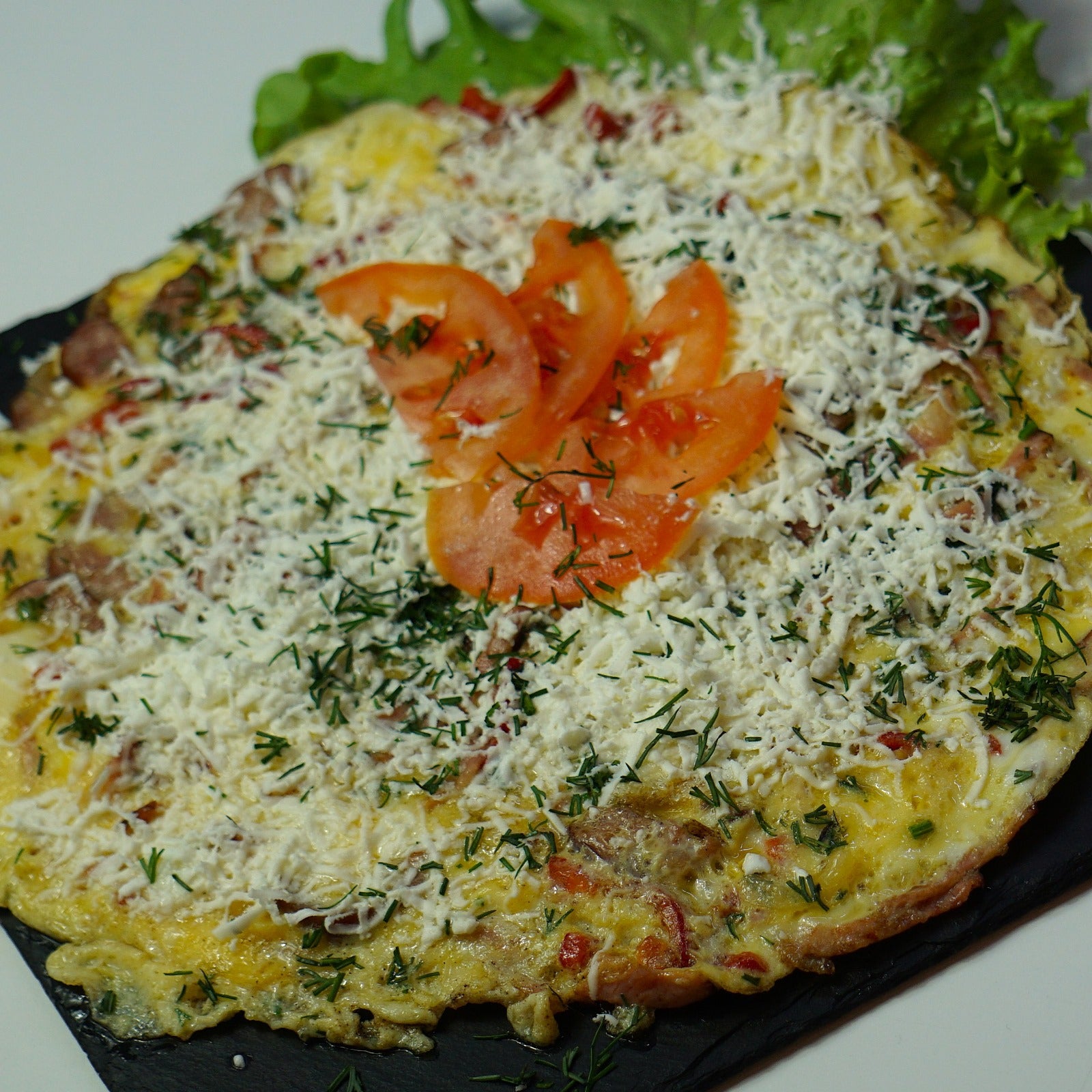 O omletă tradițională, bogată în gust, perfectă pentru un mic dejun consistent.
